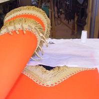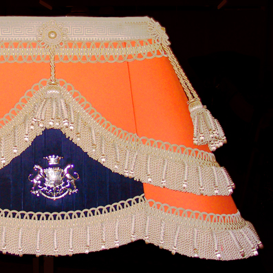 Bockdecke nach Barker's London Replique nach bestehendem Original, Neuanfertigung der fehlenden Bestandteile wie Lakaien-Haltegriffe und Aufhängung der Bockdecke Konservierung der alten Bockdecke